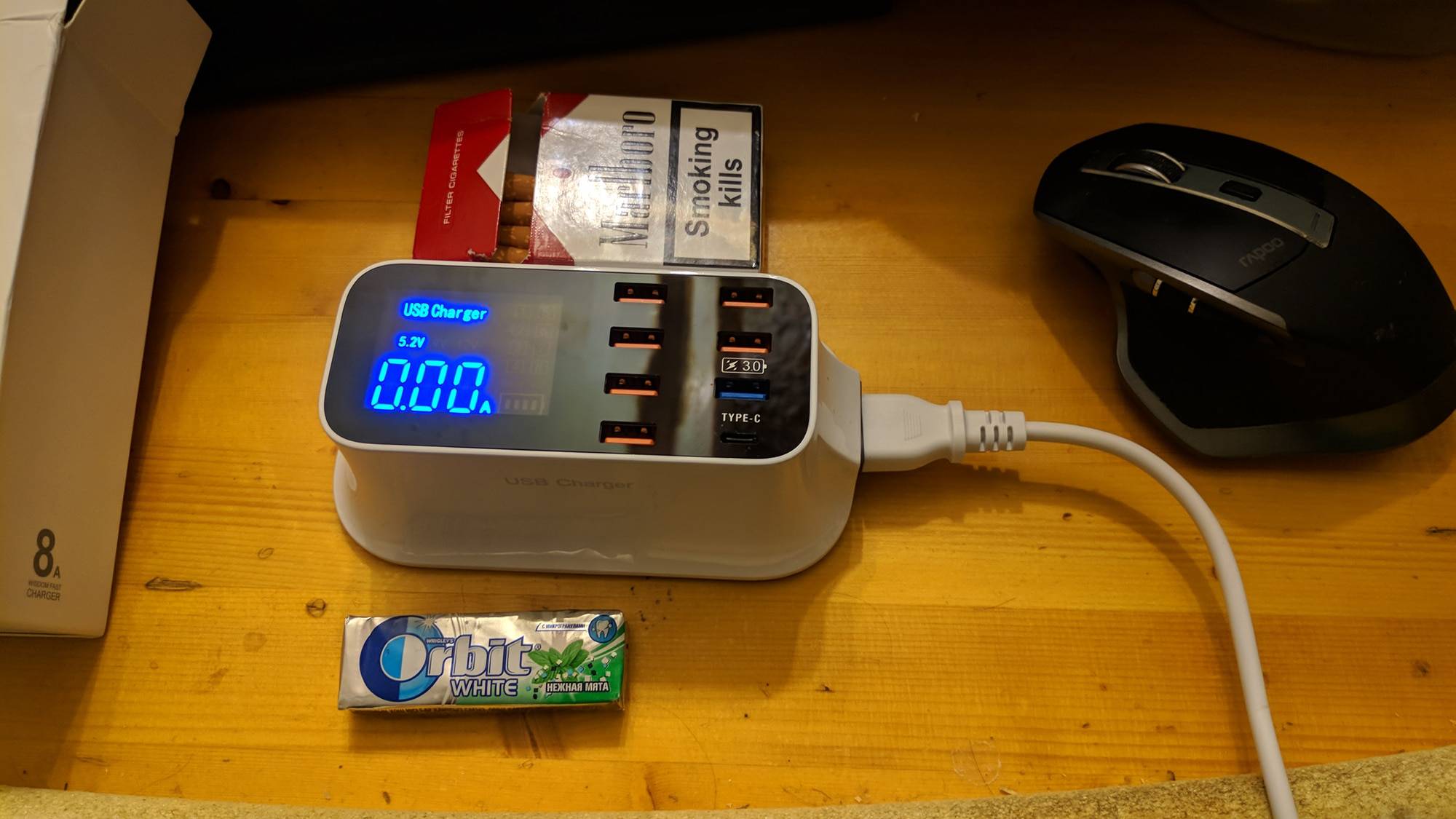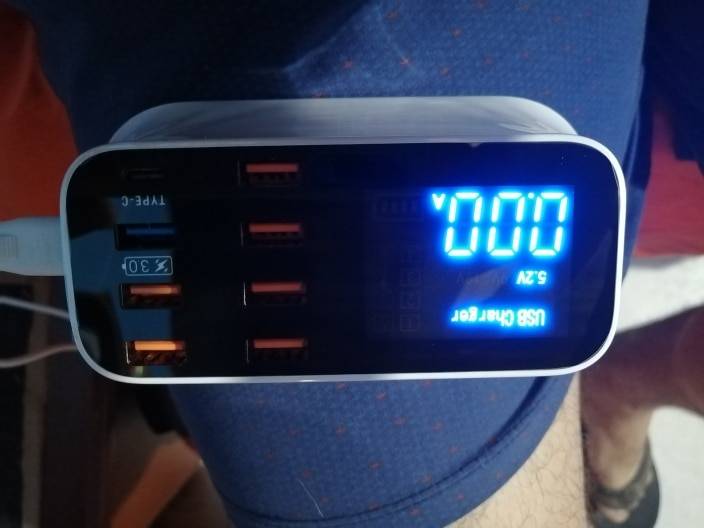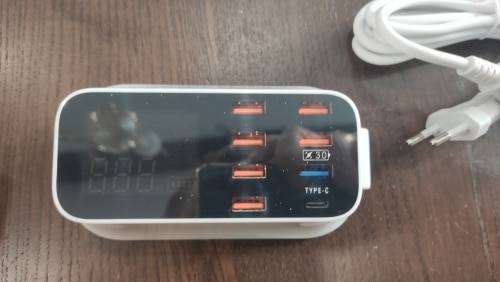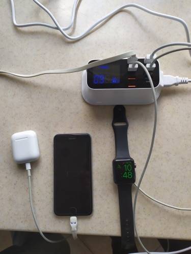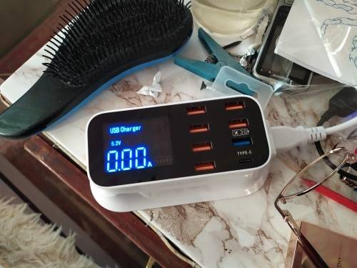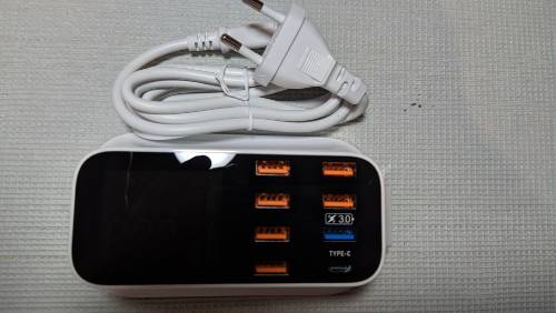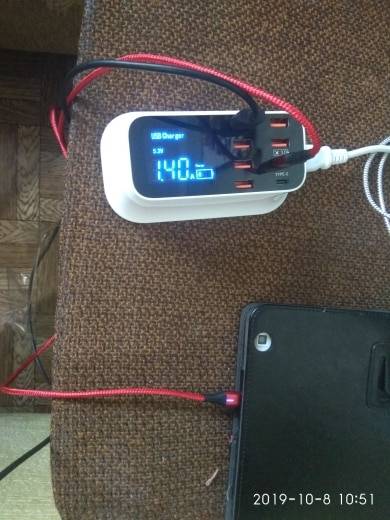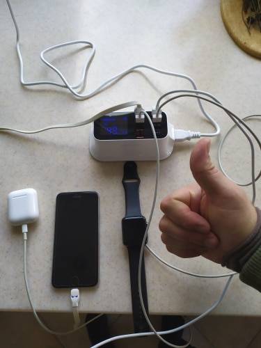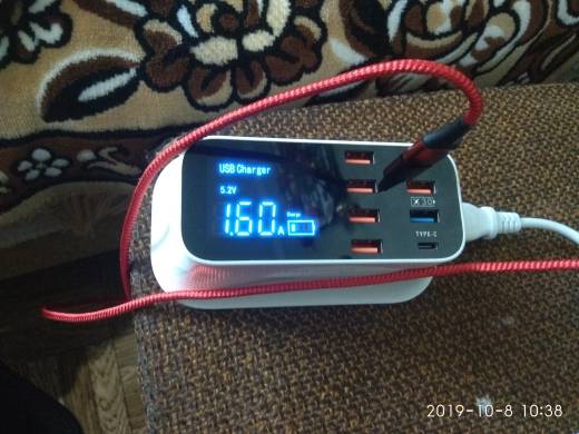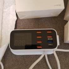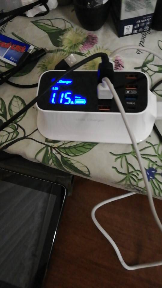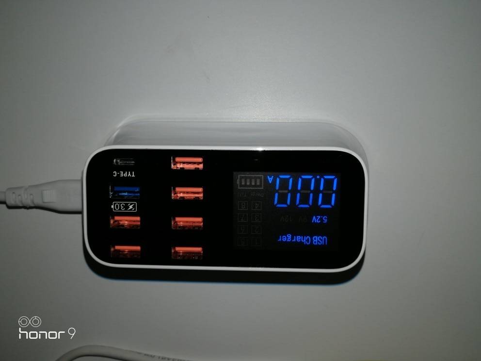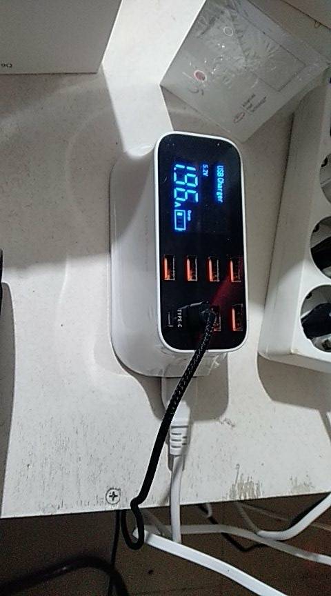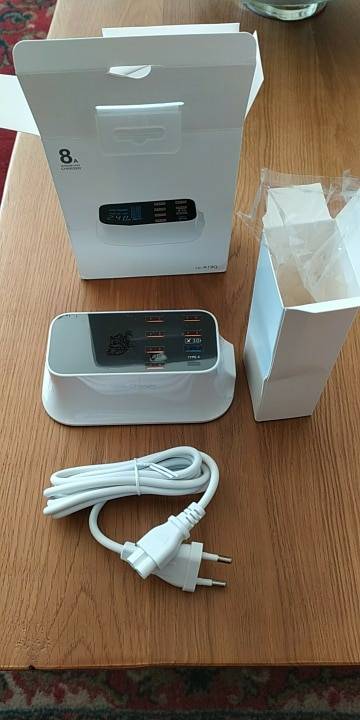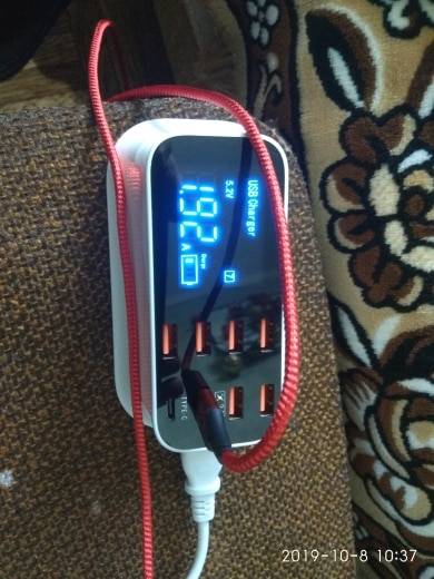 Got this miracle pretty quickly, although the store did not hurry to send it. Packed normally, damage the packaging would not be easy. The device works, but for me a little strange. According to the display, the iPhone 5S it charges 0.6-0.95a (as should), the Samsung 1,15 tablet (this is something small), Xiaomi Mi 8 1.78a (quick charge). The fast charging port is only one, although I expected for some reason all the ports (probably strange I). In principle, it works and fine.