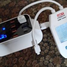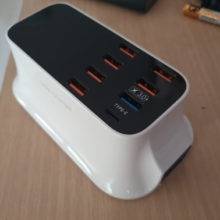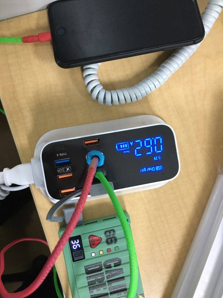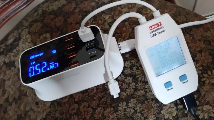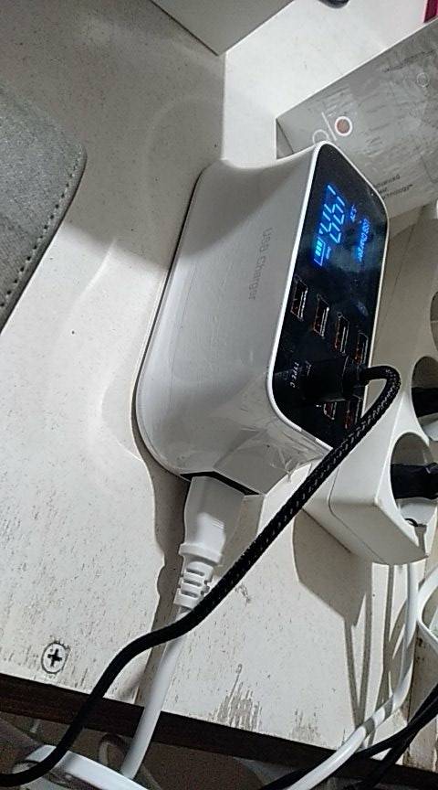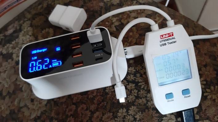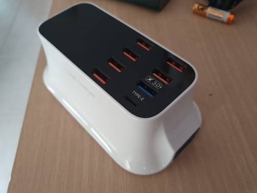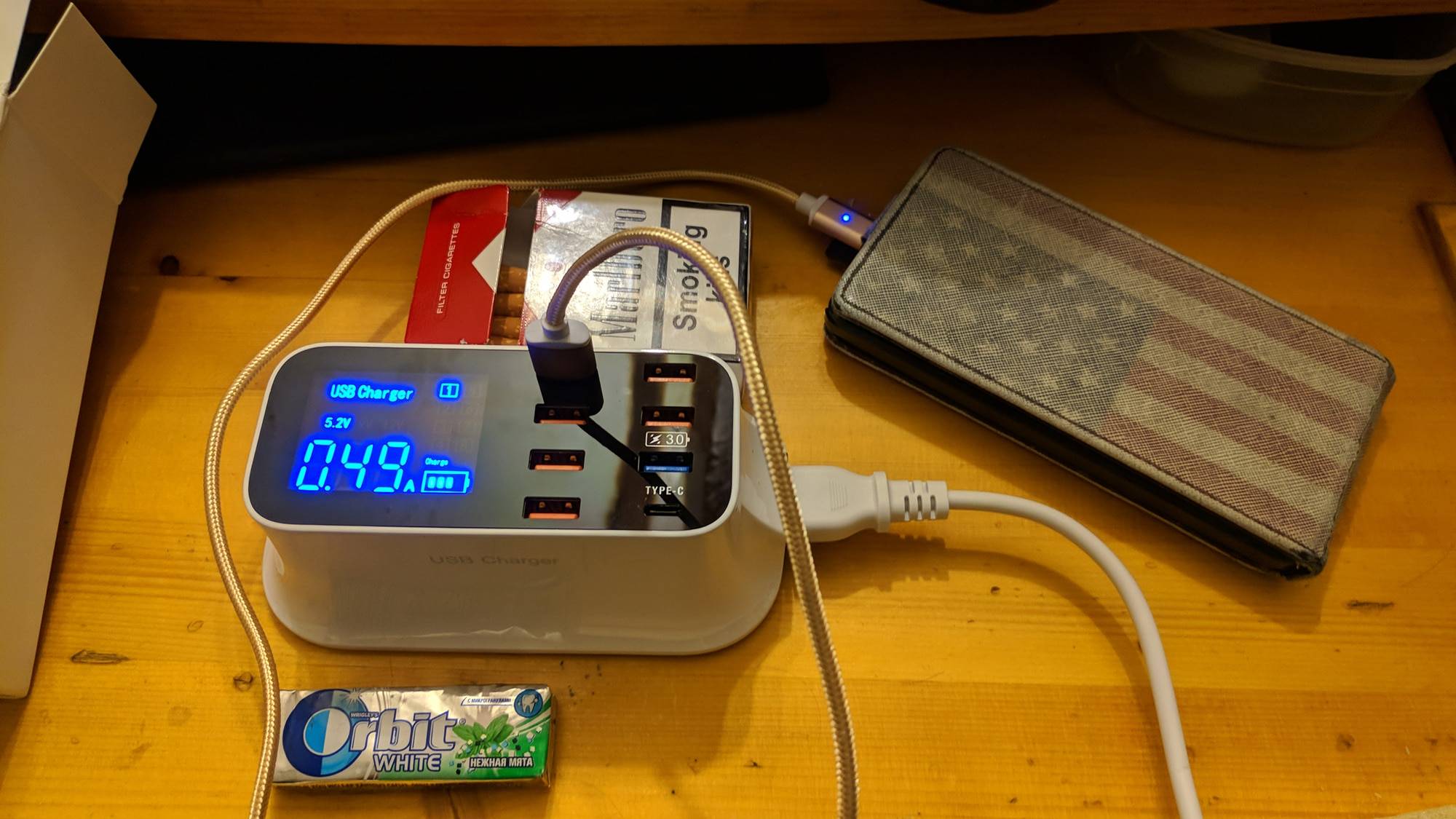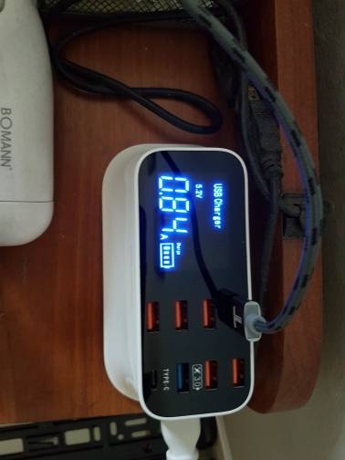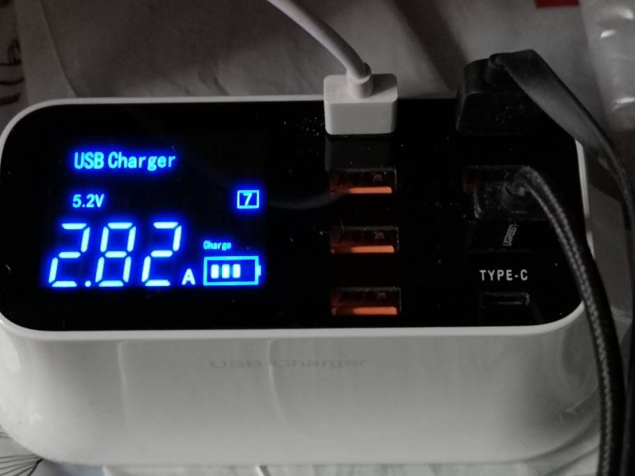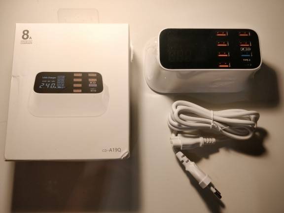 Got this miracle pretty quickly, although the store did not hurry to send it. Packed normally, damage the packaging would not be easy. The device works, but for me a little strange. According to the display, the iPhone 5S it charges 0.6-0.95a (as should), the Samsung 1,15 tablet (this is something small), Xiaomi Mi 8 1.78a (quick charge). The fast charging port is only one, although I expected for some reason all the ports (probably strange I). In principle, it works and fine.