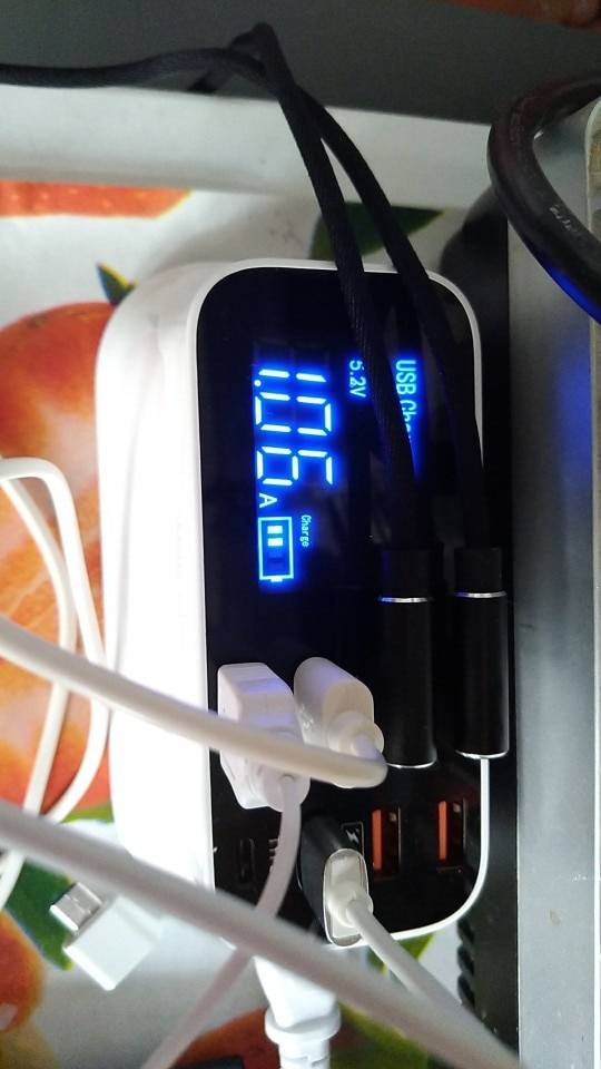 Cool thing! Now do not bother with power supplies. Works perfectly, shows how quickly and how much connected gadgets are charged. I recommend!