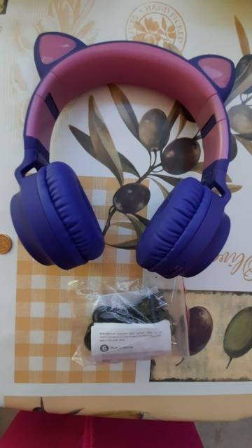Such headphones, only in purple, we have been using for 8 months. Bought for a child, she has been from 1,5 years, listening to songs, watching cartoons in them, now she's 2 years old and she's always in swing with them. The quality corresponds to the price, work without complaints, both from Bluetooth and from the flash drive, the volume depends on the device, from the tablet you can do quietly (on it old Android), but with Galaxy Note 10 +, just like from the flash drive is loud enough for the baby even at a minimum. The charge holds quite well and for a long time, I think continuous listening is enough for more than 3 hours. I recommend and the goods and the store, the packing is excellent, the navel-air cushion, delivery to Krasnoyarsk 11.11 ordered 16.11 received from the courier cdek.