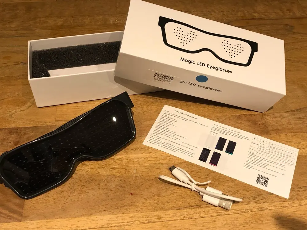 These party glasses are so cool! They were shipped super fast, within 2 weeks to The Netherlands. I saw a guy wearing them at a festival and I had to get one for myself. The glasses are so much fun, you can customise text, draw and even use some presets. The app is also very easy to use and it’s available on Apple store. Bluetooth connection is excellent so far and it communicates very fast. The glasses also come in a nice box and it includes the charging cable. Would definitely recommend! (Can’t wait time party with them!)