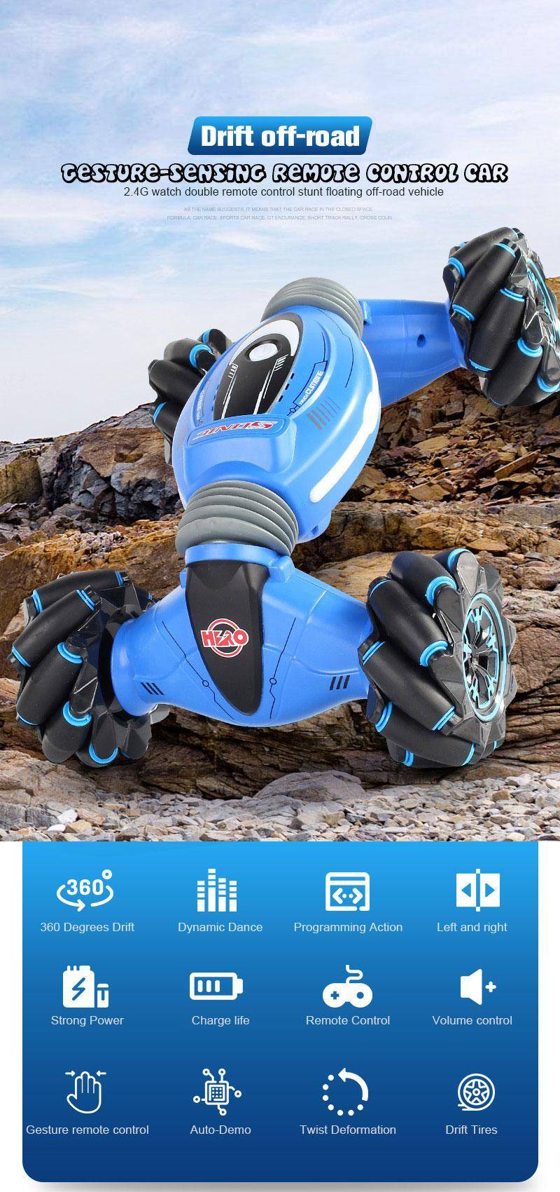 One-click conversion – suitable for running on any terrain. Just click on the switch button and the car will change from a flat shape to an off-road vehicle.