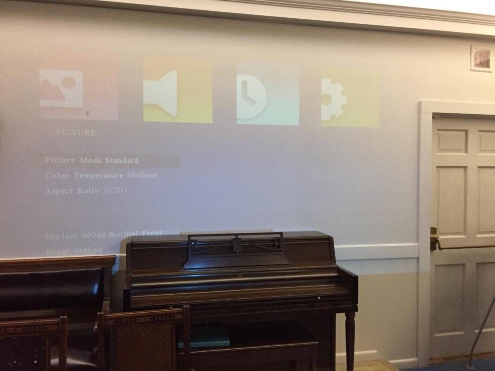 This projector is easy to use with a good picture and good sound. I’m happy with it.