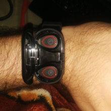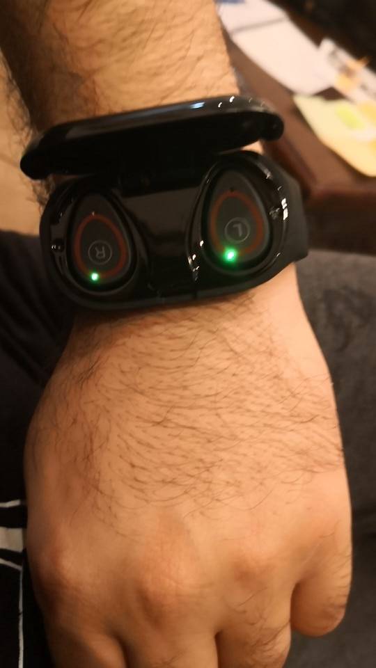 these are awesome ppl can't even see them in my ears I have to point out I have headphones great inspector gadget stuff ppl flip out when I open up the watch and take out headphones the headphones only last about 2 hrs but the case does charge them pretty quickly