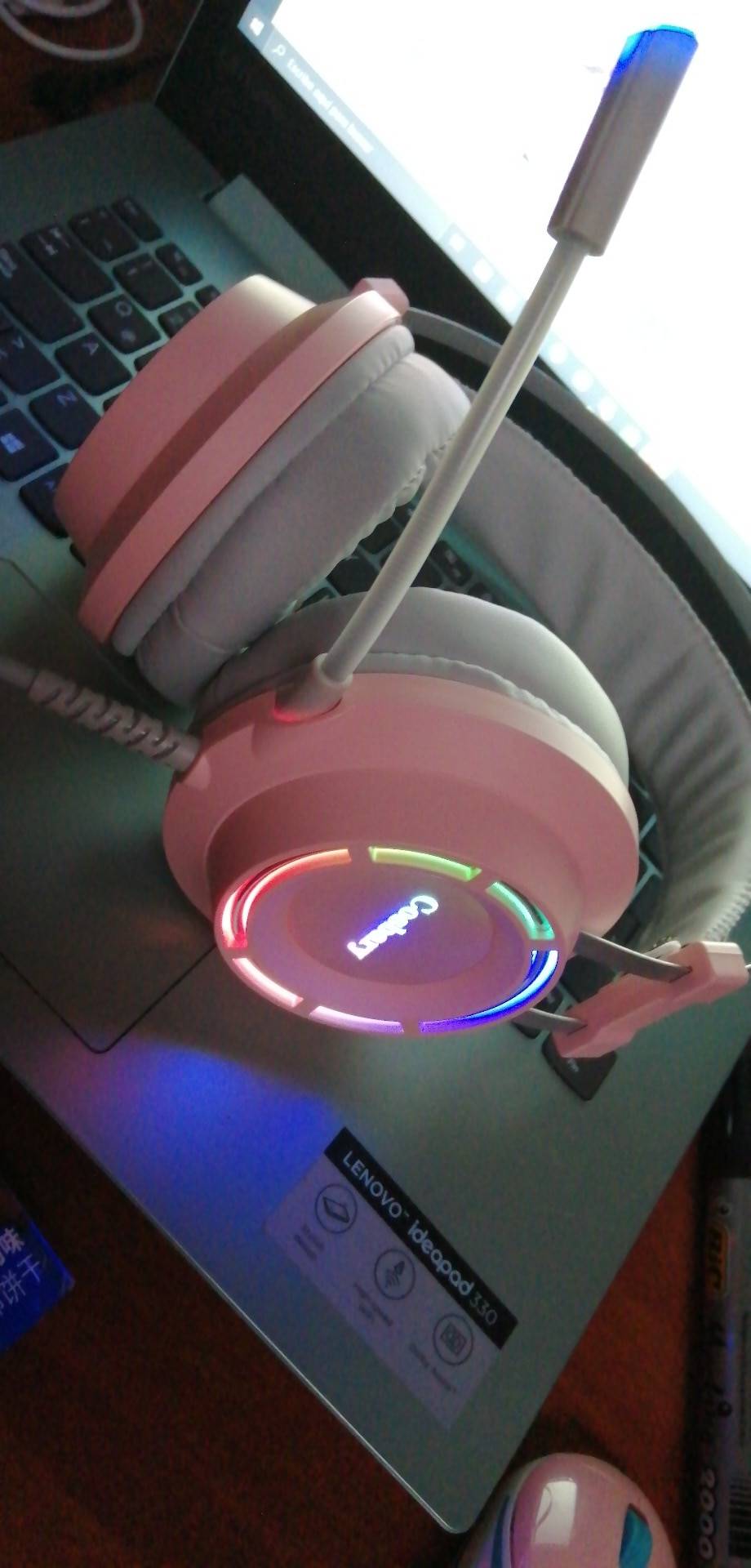 Very beautiful! Super fast here Pro Brasil, MG. Better than I expected, sound very good, perfect severe the micro looks Q of some eco or is background voice but think being well need the micro, but again without problems! Great for playing games and copper ear all, not hurt or anything. Loved the investment❤