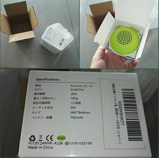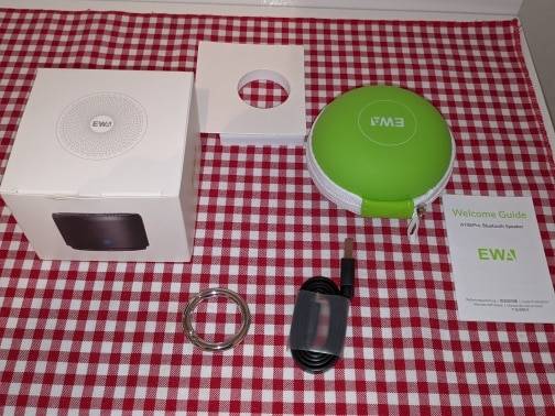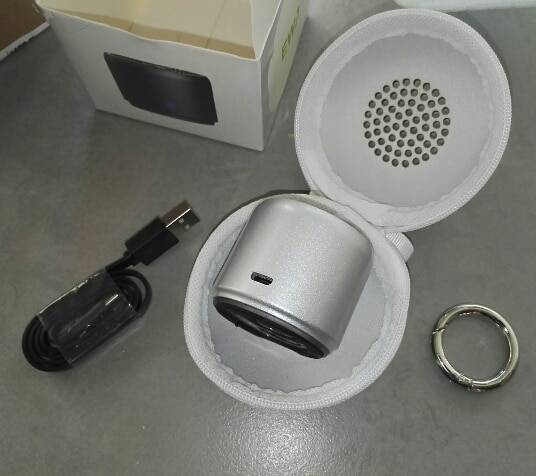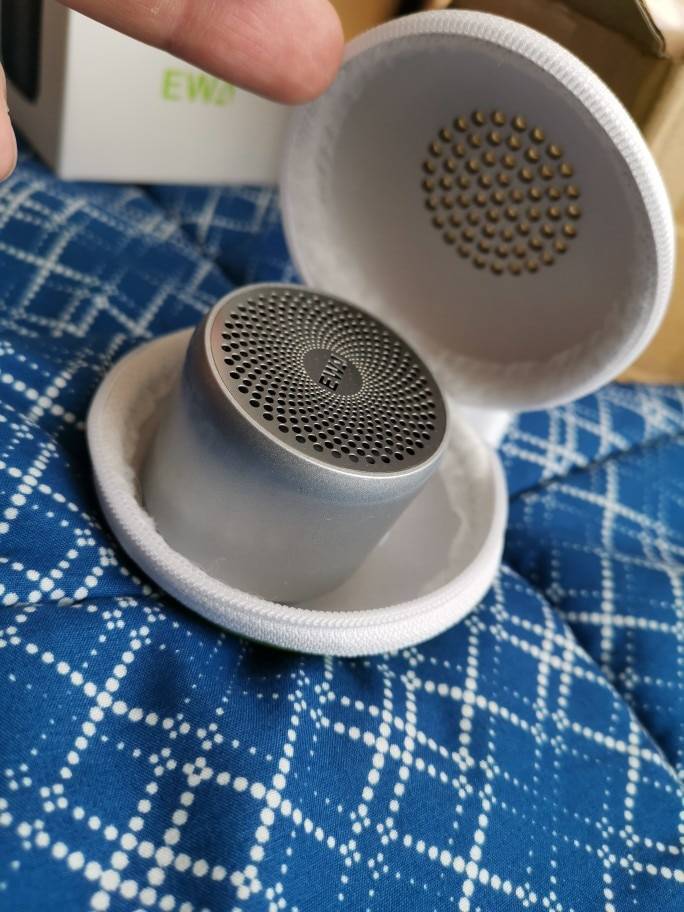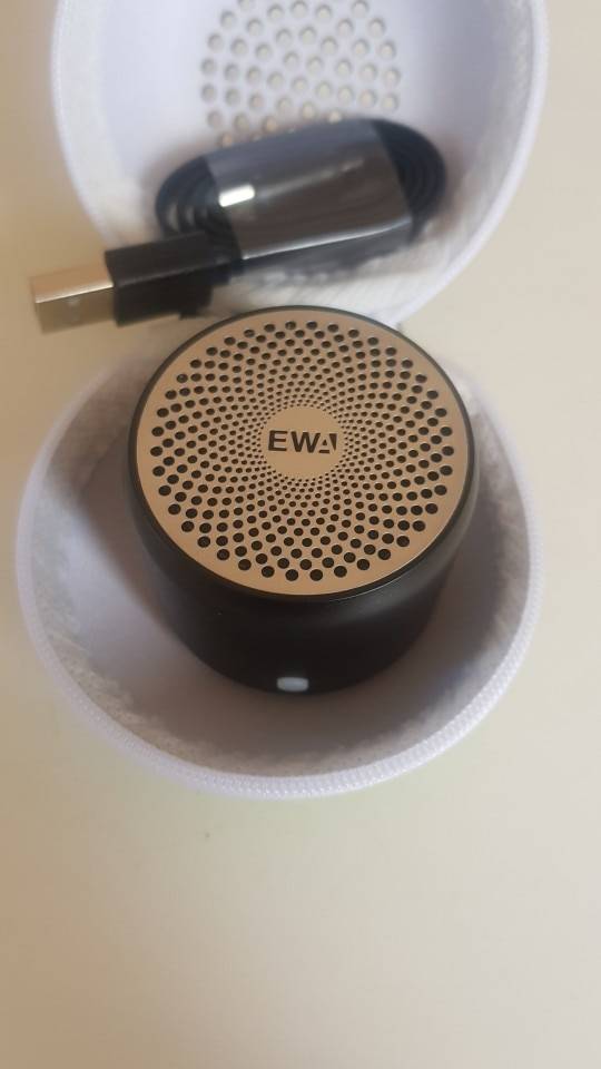 Product true to description. Ewa A106 Pro speaker arrived in four days with shipping from Spain, nicely packaged in cardboard box. Inside is a carrying case and a microUsb charging cable. It has a weight of 178grm without a holster. Its size is 48mm in diameter and 40mm high. Its Speaker is 1.5 "of 3w and has a passive 1" radiator on its base. The Speaker body is metallic and makes, next to the passive radiator, its bass is very good for its size and power. It sounds great even inside your carrying case thanks to your perforated cover. It's made of thick, tough fabric. The sound is very well balanced across the entire frequency range. His good reviews are deserved. The battery is 700mah and its charge is at 5v and 0.5A at approximately 1,5h. Its duration according to the tests I 've done matches the description.