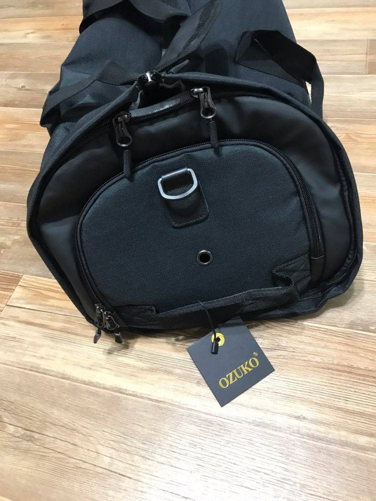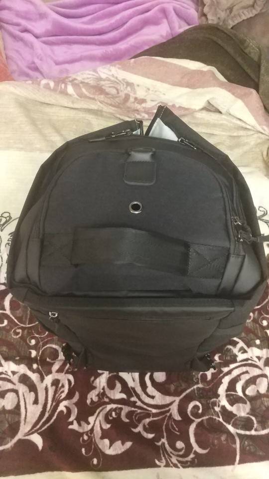 The bag is cool. Well done. Locks all work. But there is but. First came with stains inside. Secondly, when you use it as a bag or especially as a backpack, please note that when closing the side locks, it closes not tightly and there are straight holes in three fingers wide between the locks. See the photo. The color is not black but dark blue. So it seems made neatly, the straps from the backpack are removed.