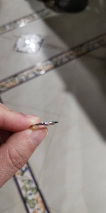 The parcel came with other shipments quickly enough. The ring is thin and cute, slightly lighter than a similar silver ring. Little stones, a bright Shine did not notice.