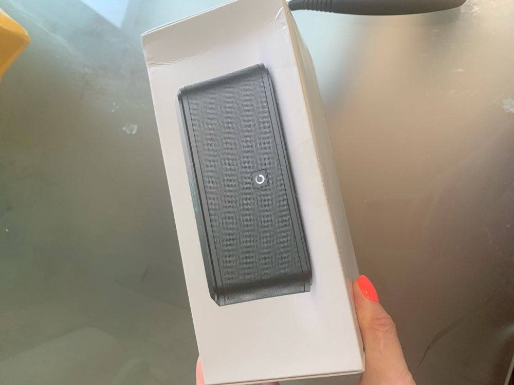 It's wonderful. Very stylish column. The sound exceeded my expectations. There are bass, plays cleanly. The upper surface is matte, which is very pleasing. I'll check the battery charge. The packaging box was burst, but the column itself is well protected. Thank you store!